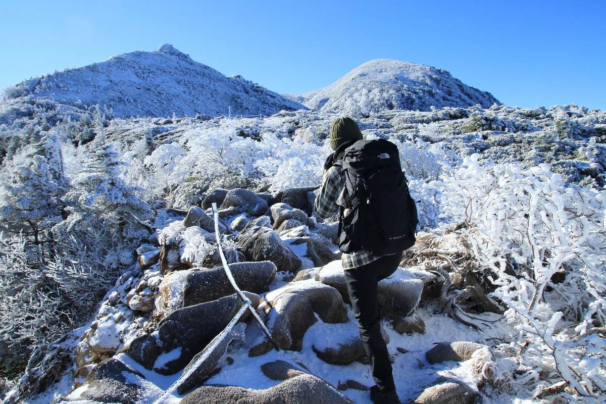 わたしたちが登ってきた東斜面には一つも霧氷がついていません。