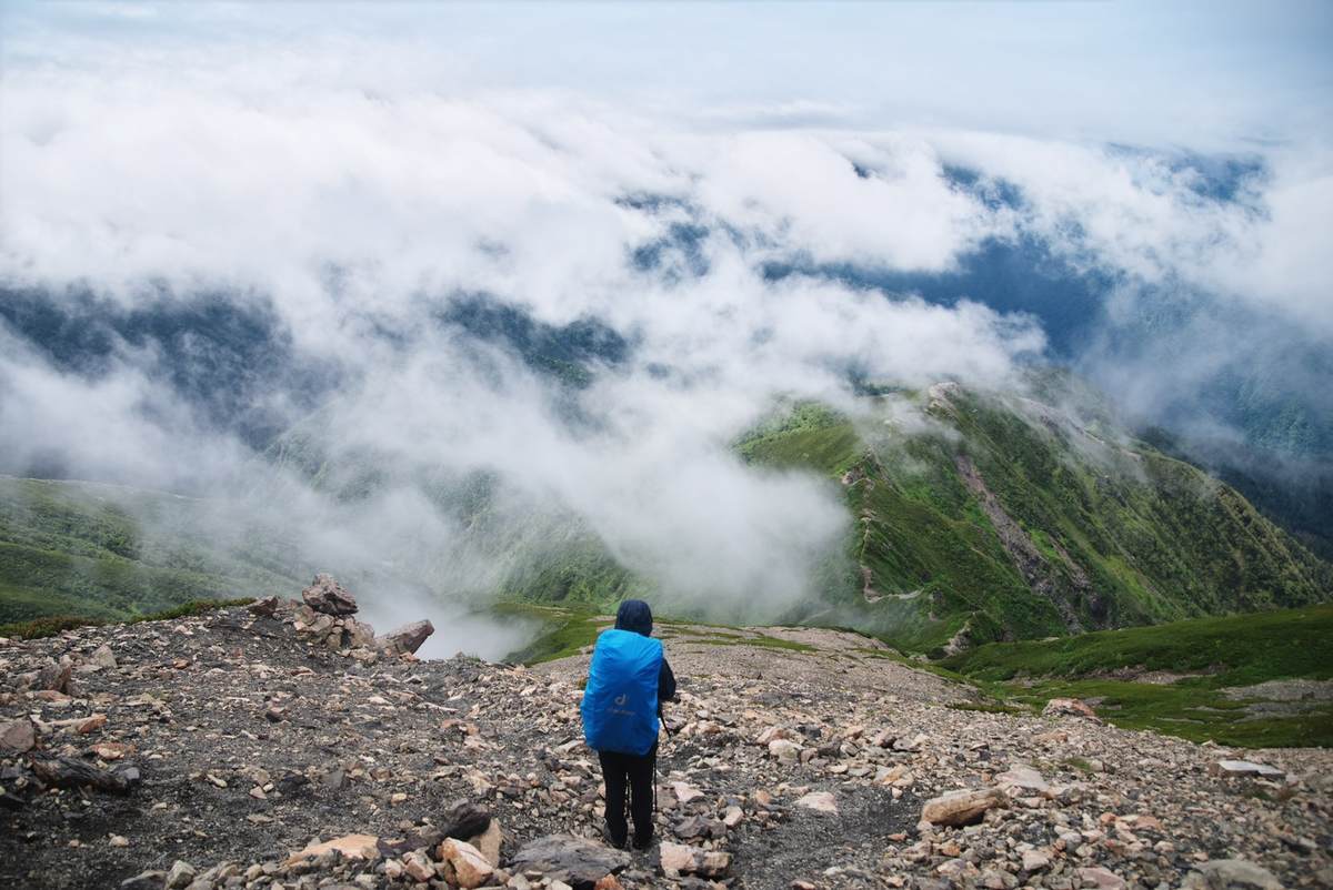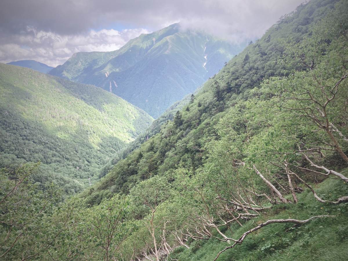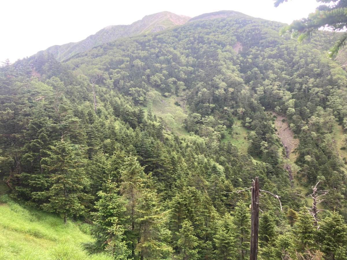 高度を下げたことで雲の下に来たらしく、開けたところからはこの日登ってきた聖岳の姿を確認することができました。