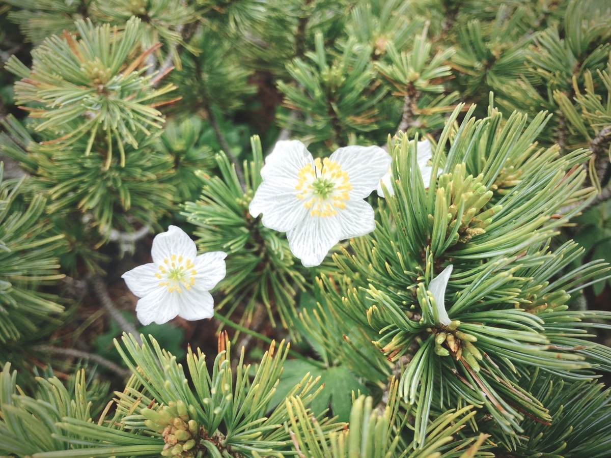 途中、ハイマツの中にハクサンイチゲを発見しました。