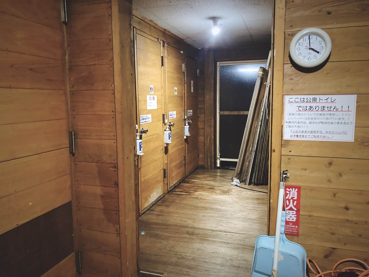 スタッフさん含め宿泊者はわたし以外全員男性だったので、着替えにはトイレを利用することにしました。